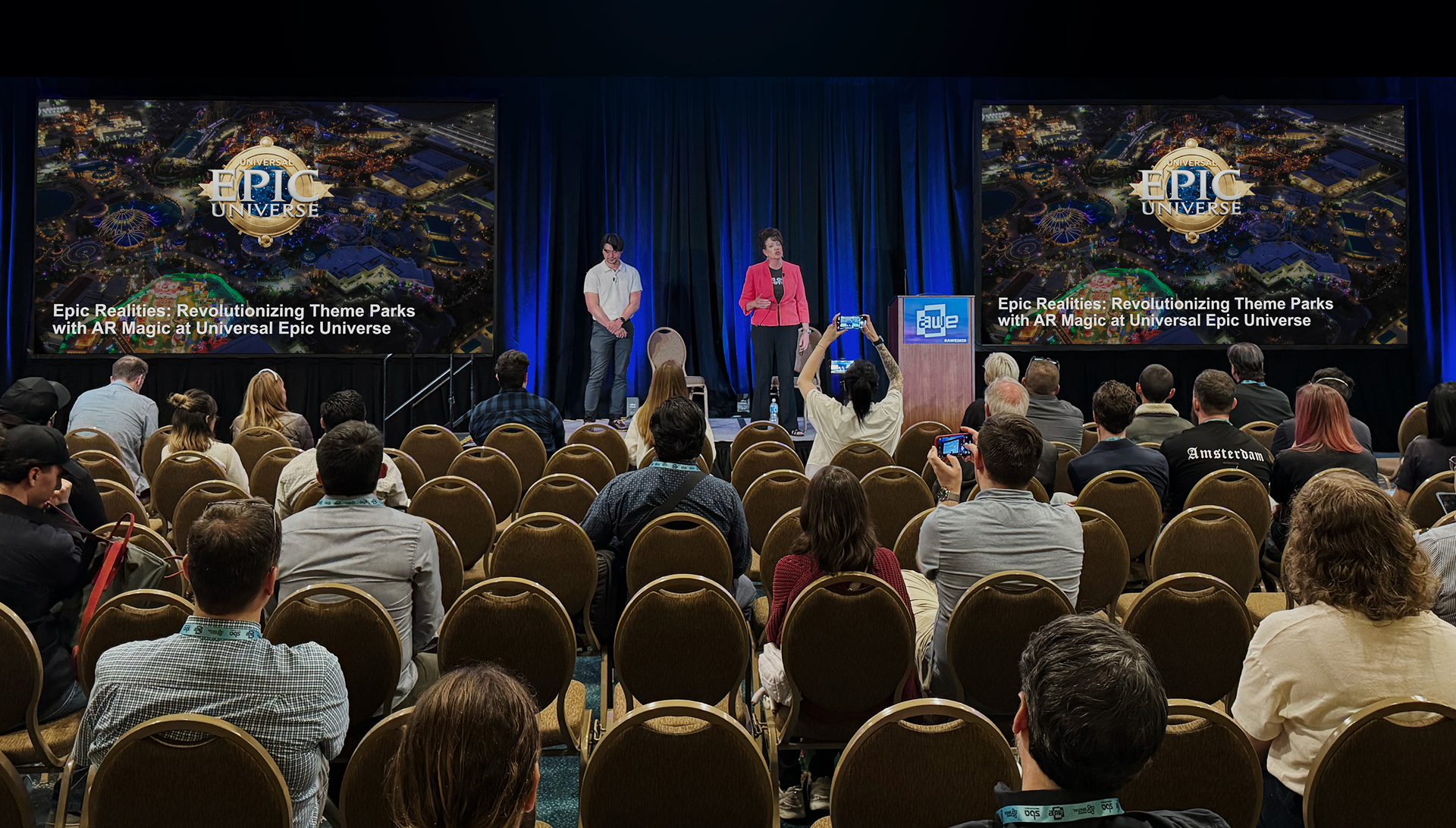 In addition to its Auggie success, Lucid Reality Labs took the AWE stage to reveal its recent collaboration with Universal Destinations & Experiences on “Epic Realities: Revolutionizing Theme Parks with AR Magic at Universal Epic Universe.” Through live demos and behind-the-scenes footage, the team demonstrated how AR-powered portals and interactive previews extend the park experience beyond physical lines, bringing rides, storytelling, and guest engagement into the home.